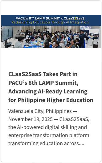 CLaaS, which stand for Competency Learning as a Service, delivers work-integrated digital skilling in hybrid flexible learning journey for the Skills-First Future of Work. It delivers Career Outcome for Individual and Digitalization Outcome for Enterprise without compromizing work and life.