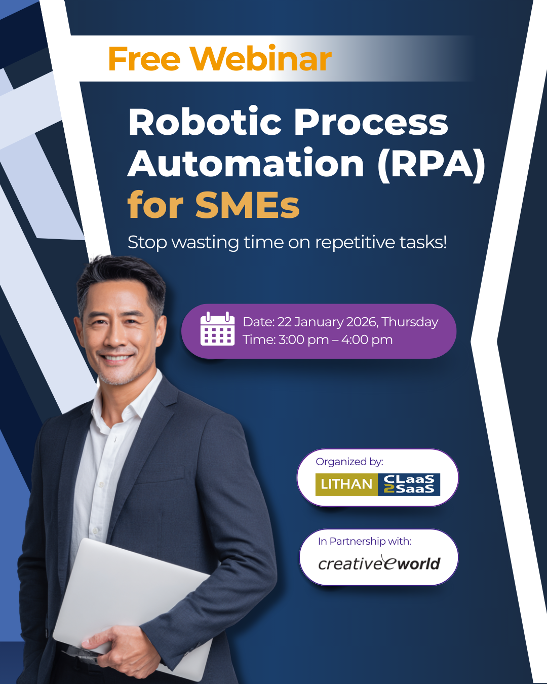 This easy-to-understand session will provide SME management with practical insights into kick-starting their RPA journey, helping organisations better understand how automation can be applied meaningfully within their operations.